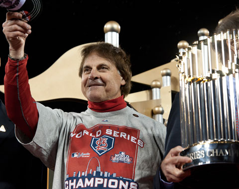 Baseball in St. Louis won’t be the same for me for a while to come. LaRoussa has been our coach all of my adult life and I’m sad to see him go, but happy he’s choosen to go out on TOP! Way to go Tony, you’ve been a great leader to our team!